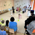 Здесь собрались дети и их воспитатели, чтобы отпраздновать светлый праздник Пасхи. На свой утренник они пригласили настоятеля Кирилловского храма г. Рассказово иерея Артемия Синючкова.