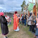 Под водительством настоятеля протоиерея Владимира Корабельникова и клирика храма иерея Романа Шибаева арженские верующие с радостными, ликующими песнопениями и возгласами «Христос Воскресе!» «Воистину Воскресе!» обносили вокруг дома Божия крест, иконы, хоругви и артос, получая от священнослужителей благодатное окропление святой водой.